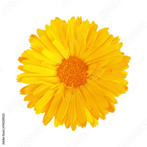 Calendula flower isolated on white background. Flat lay, top view.