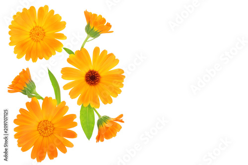 Calendula. Marigold flower isolated on white background with copy space for your text