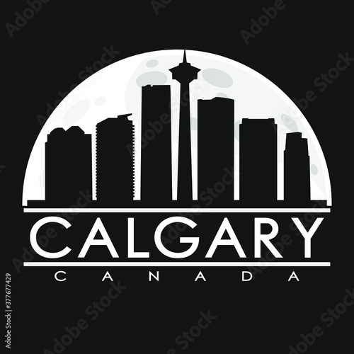 Calgary Canada, Full Moon Night Skyline Silhouette Design City Vector Art.