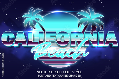 california beach retrowave synthwave typography editable text effect font style template background design