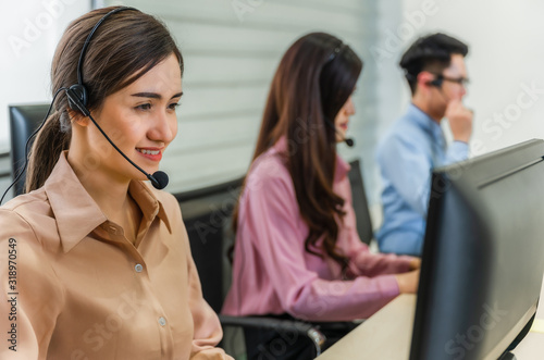Call center operators. Beautiful asian woman and teamwoek working service consulting clients