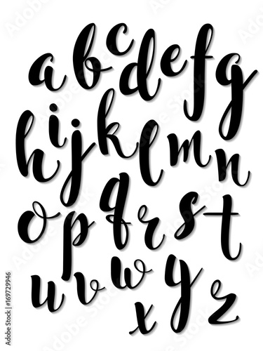 Calligraphic vector font. Handwritten alphabet in brush style. Hand Lettering. Modern Typography.