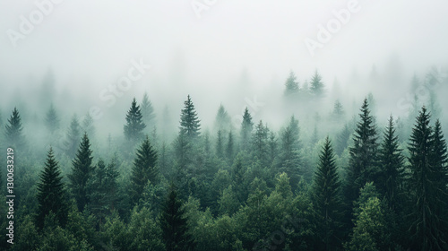 Calm and Misty Forest Scene with Layers of Soft, Hazy Trees Fading into the Distance, Creating a Serene and Atmospheric Mood.