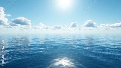 Calm Blue Ocean With White Clouds And Bright Sunlight