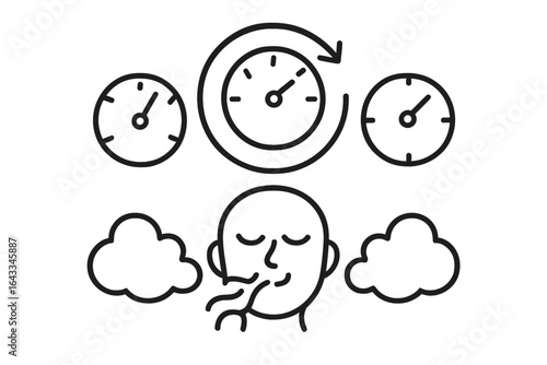 Calm mind concept with clocks and a person relaxing in a meditative state