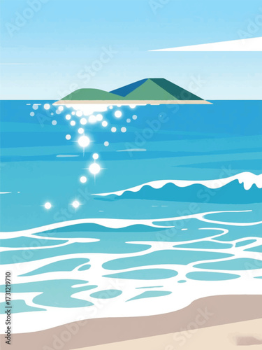 Calm Ocean Blue Illustrator Artwork Design Template Poster