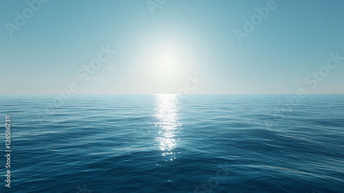 Calm ocean, sunny day, horizon, peaceful scene, travel background