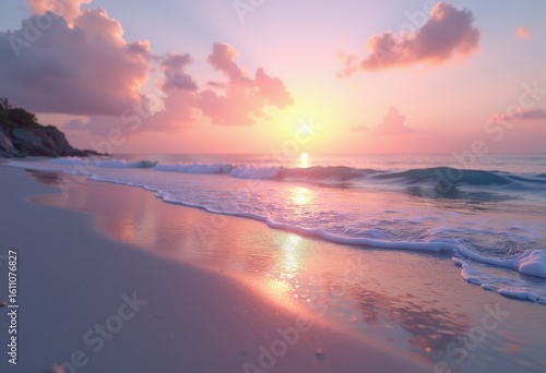 calm ocean waves beach sunset glow reflecting tranquility serene seascape natural beauty blissful evening horizon, water, shore, light, pink, orange, reflection
