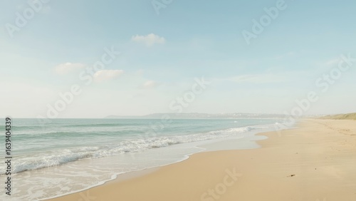 Calm Oceanfront Panorama Showcasing Natural Beauty and Cityscape
