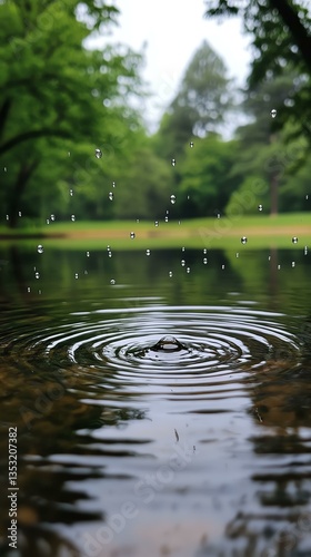 Calm water ripples enhanced by gentle raindrops.