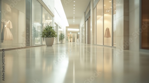Calming and softly lit shopping mall interior with a focus on retail and fashion design concepts