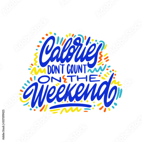 Calories Don't Count On The Weekend Quote. An Inspiring Motivational Life Quote for Banner Design, Wall Art, Social Media Post, Poster, Sticker and T-Shirt Isolated on White Background. Vector