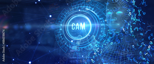 CAM Computer-aided manufacturing industrial technology automation concept. 3d illustration