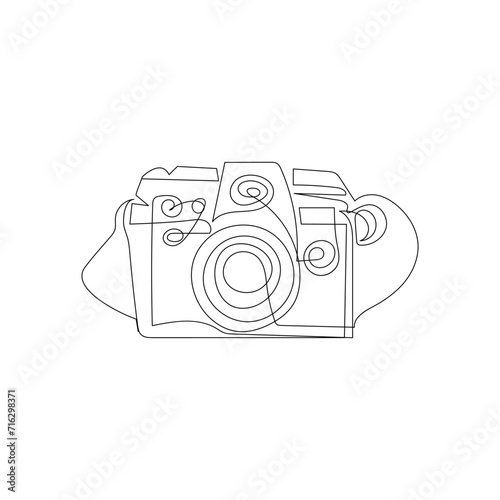 Camera continuous one line drawing outline vector illustration