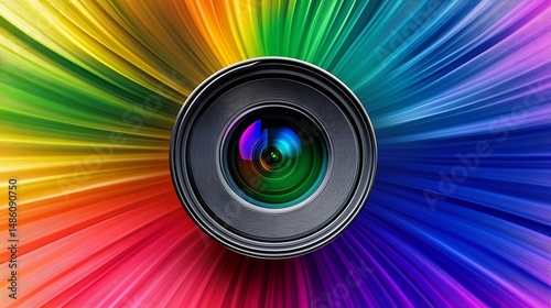 Camera icon spinning inside a rainbow vortex