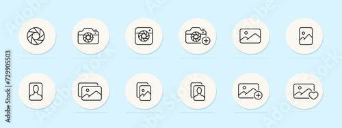 Camera line icon. Versatile, high-resolution, professional-grade, photography, innovation, precision, compact, lightweight. Pastel color background. Vector line icon for business and advertising