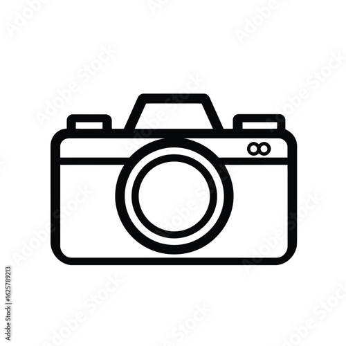 Camera Outline, Black Line Art on Transparent Background, Simple Isolated Object