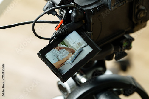 Camera setup for recording tutorials at a modern workspace during bright daylight