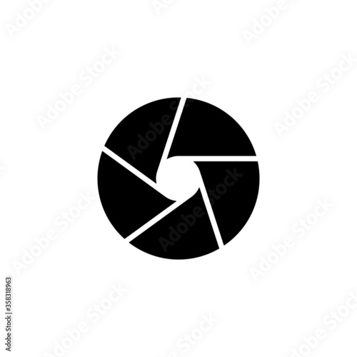 camera shutter icon in black flat glyph, filled style isolated on white background