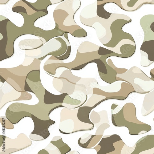 Camouflage Pattern Seamless Design: A repeating, abstract pattern of layered camouflage design, evoking a sense of covert activity.