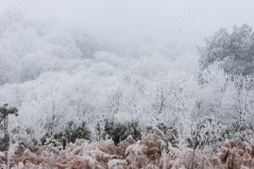 Campagne givrée, givre, blanc, neige