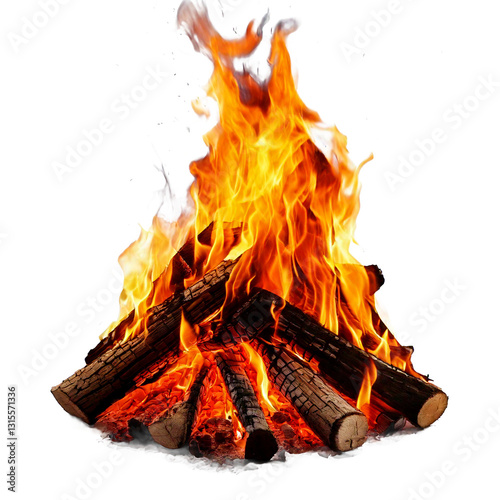 Campfire Burning Bright isolated on transparent background, PNG file, fire in the fireplace