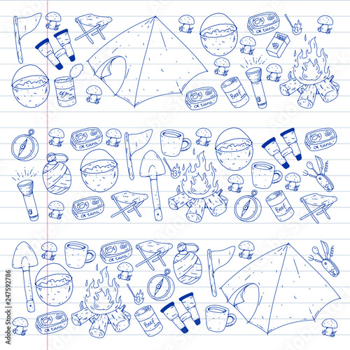Camping vector illustration. Travel outdoor adventure
