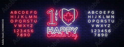 Canada Day Neon Vector Design Template. Happy Canada Day Illustration festive, colorful flyer, banner light, modern design. Vector illustration. Editing text neon sign