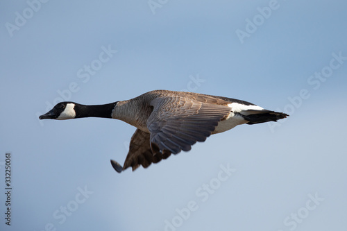 Canada goose flying, seen in the wild near the San Francisco Bay