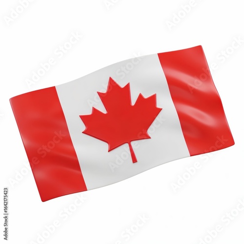 Canadian Flag in Motion: The iconic Canadian flag, a symbol of national pride, gently dances in the wind, showcasing its vibrant red and white colors and the distinctive maple leaf emblem.