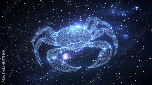 Cancer, the crab constellation, shines brightly in the galaxy background