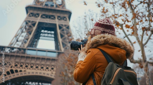 Candid at a Tourist Attraction: A woman taking photos at a famous tourist attraction, capturing memories of her trip.