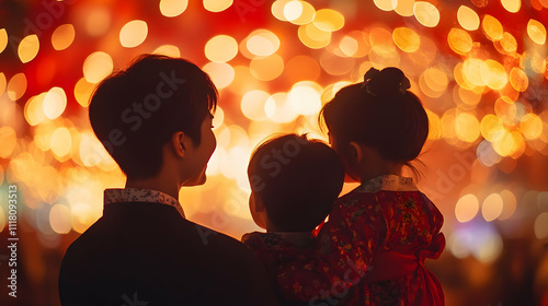Candid Family Attending Seollal Traditional Concert concept as A family attending a traditional Seollal concert enjoying live performances capturing cultural immersion and festive atmosphere symbolizi