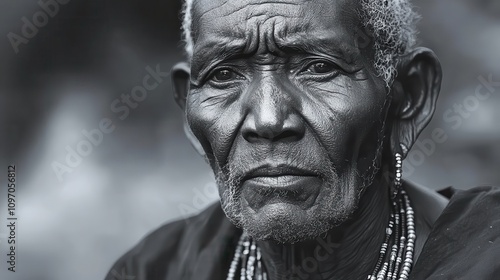 Candid portrait of an elderly woman rural village black and white photography natural setting close-up resilience