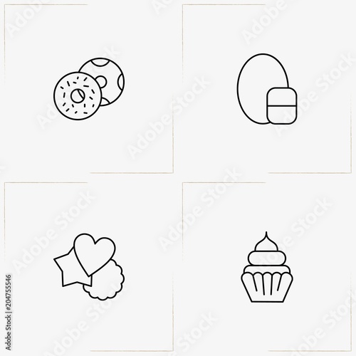 Candies line icon set with cookies, kinder egg and donuts
