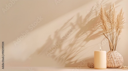 Candle and Dried Grass Arrangement in a Minimalist Setting