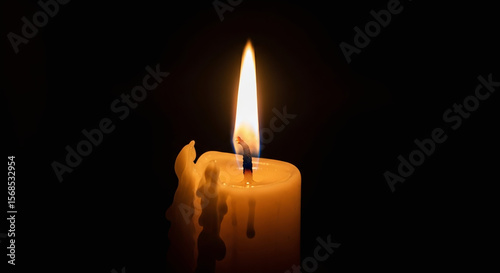 Candle Flame: A single candle burns brightly, casting a soft glow against a dark background, symbolizing hope and remembrance.