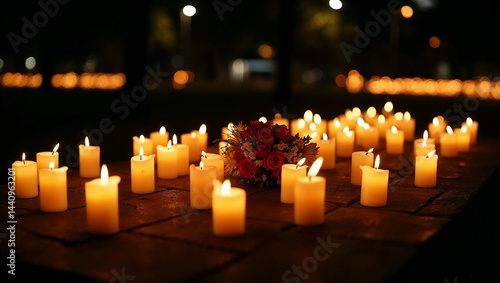 Candles and flowers arranged in memory of torture victims during commemorative vigil