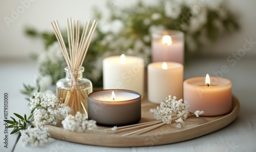 Candles and reed diffusers for aromatherapy session
