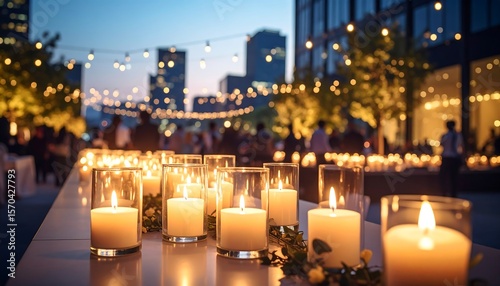 Candles Glowing at Outdoor Event in Evening Urban Setting