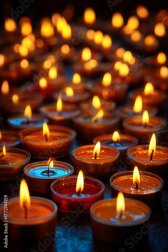 Candles glowing warmly during a peaceful evening gathering in a serene space