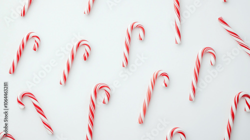 Candy Cane Festive Pattern: A cheerful and whimsical pattern of candy canes scattered on a white background, perfect for holiday branding and festive designs.