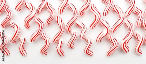 Candy cane pattern on white background festive peppermint design aerial view holiday theme decoration