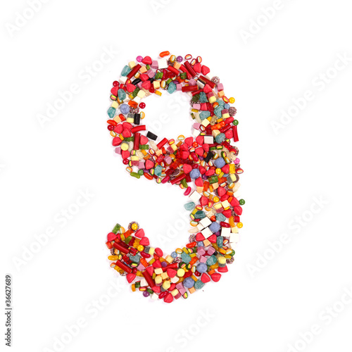 Candy letter on white background