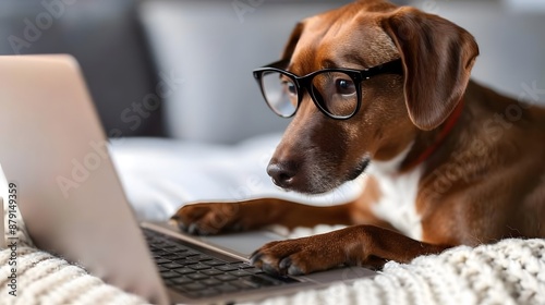 Canine Productivity - Diligent Pet Typing on Laptop with Focus and Determination