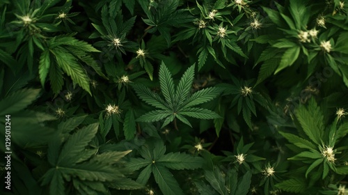 Cannabis plants, indoor cultivation, lush green leaves, background texture, medical use