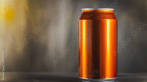 Canned Beverage: A single, sleek aluminum can with a vibrant orange finish stands proudly against a blurred, golden background, inviting a refreshing break.