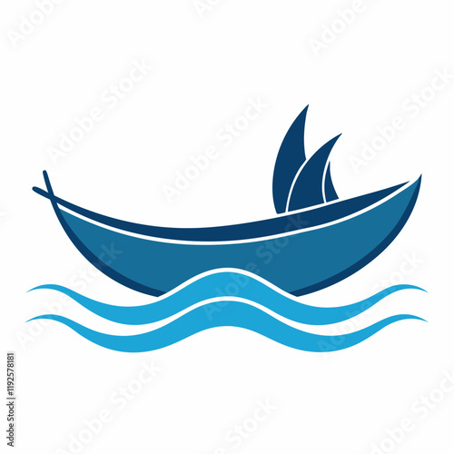 Canoe on sea waves silhouette vector illustration on white background