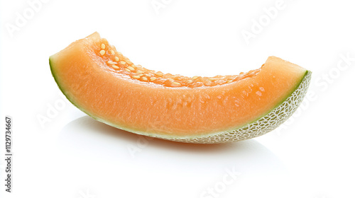 Cantaloupe isolated on white background. sweet juicy melon fruit food diet, piece of raw fresh dessert cut in half, orange or yellow and green tropical vegetarian meal segment.