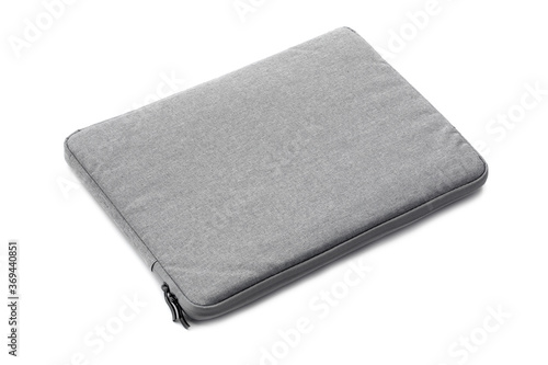 Canvas Polyester texture synthetical textile laptop bag on white background.